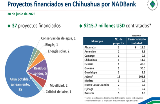Durante el encuentro se destacó que ambos factores impactan directamente en la atracción de inversiones y en la calidad de vida de los habitantes de la frontera. El evento fue organizado por el C.P. Sergio Nevárez Rodríguez, director ejecutivo de la Junta Municipal de Agua y Saneamiento (JMAS), y el Dr. Carlos Yates, presidente del Clúster de Energía Chihuahua (CECH). Las ponencias que se ofrecieron durante el evento contaron con la participación de John Beckham, director del Banco de Desarrollo de América del Norte; el Dr Rogelio Montemayor, presidente del Clúster de Energía de Coahuila; exgobernador de Coahuila.