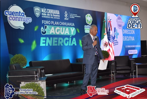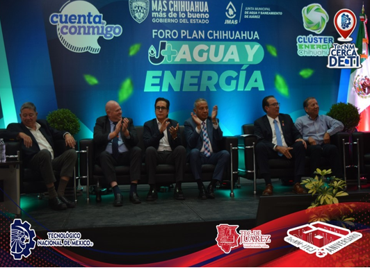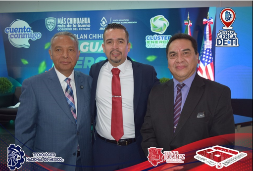 El evento fue organizado por el C.P. Sergio Nevárez Rodríguez, director ejecutivo de la Junta Municipal de Agua y Saneamiento (JMAS), y el Dr. Carlos Yates, presidente del Clúster de Energía Chihuahua (CECH).