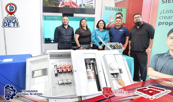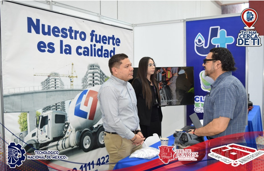 Stand de información de empresas nacionales e internaciones: SIEMENS ITESA, GCC CEMENTOS CHIHUAHUA,REPEINEL Y OTROS.
